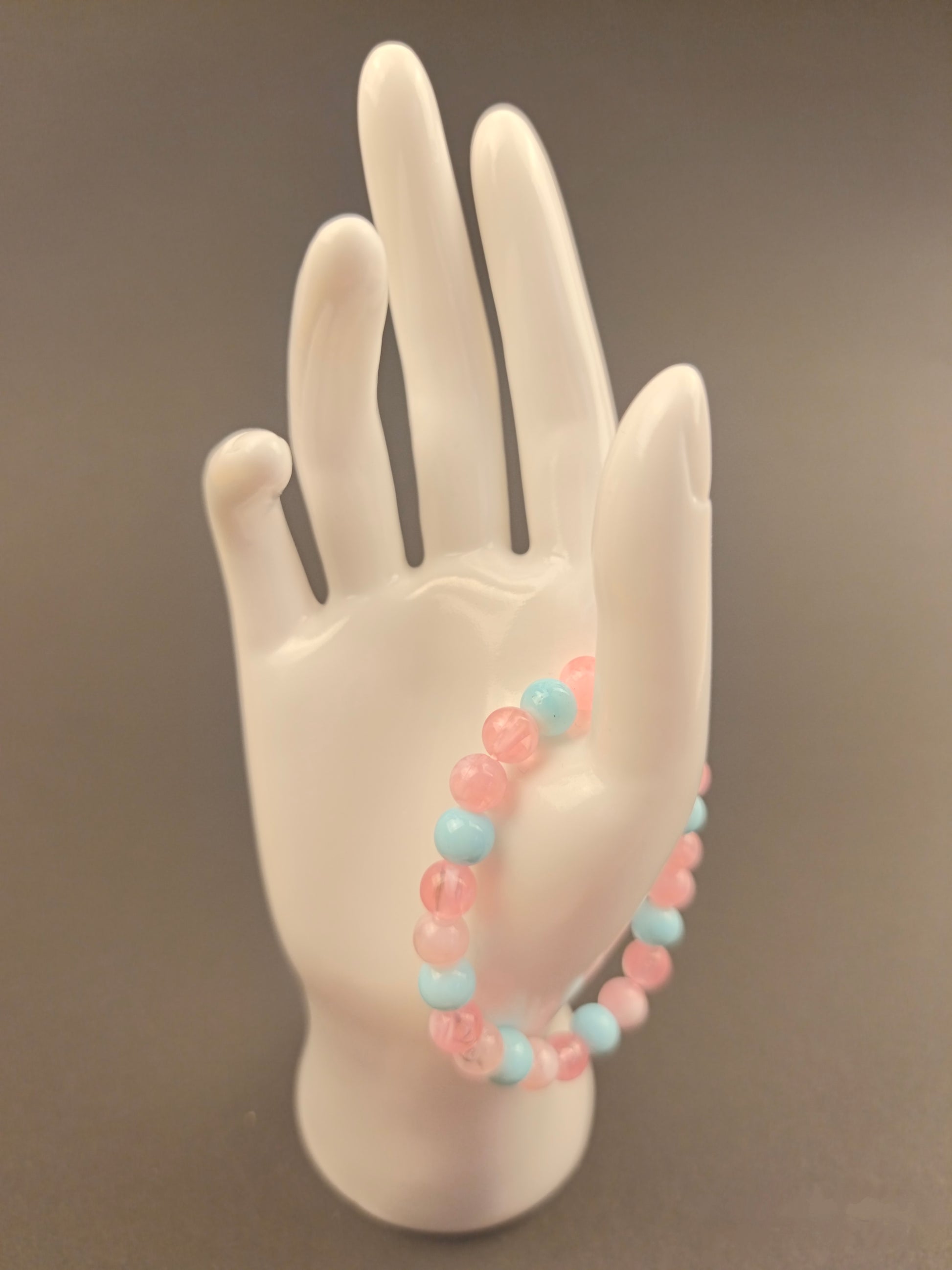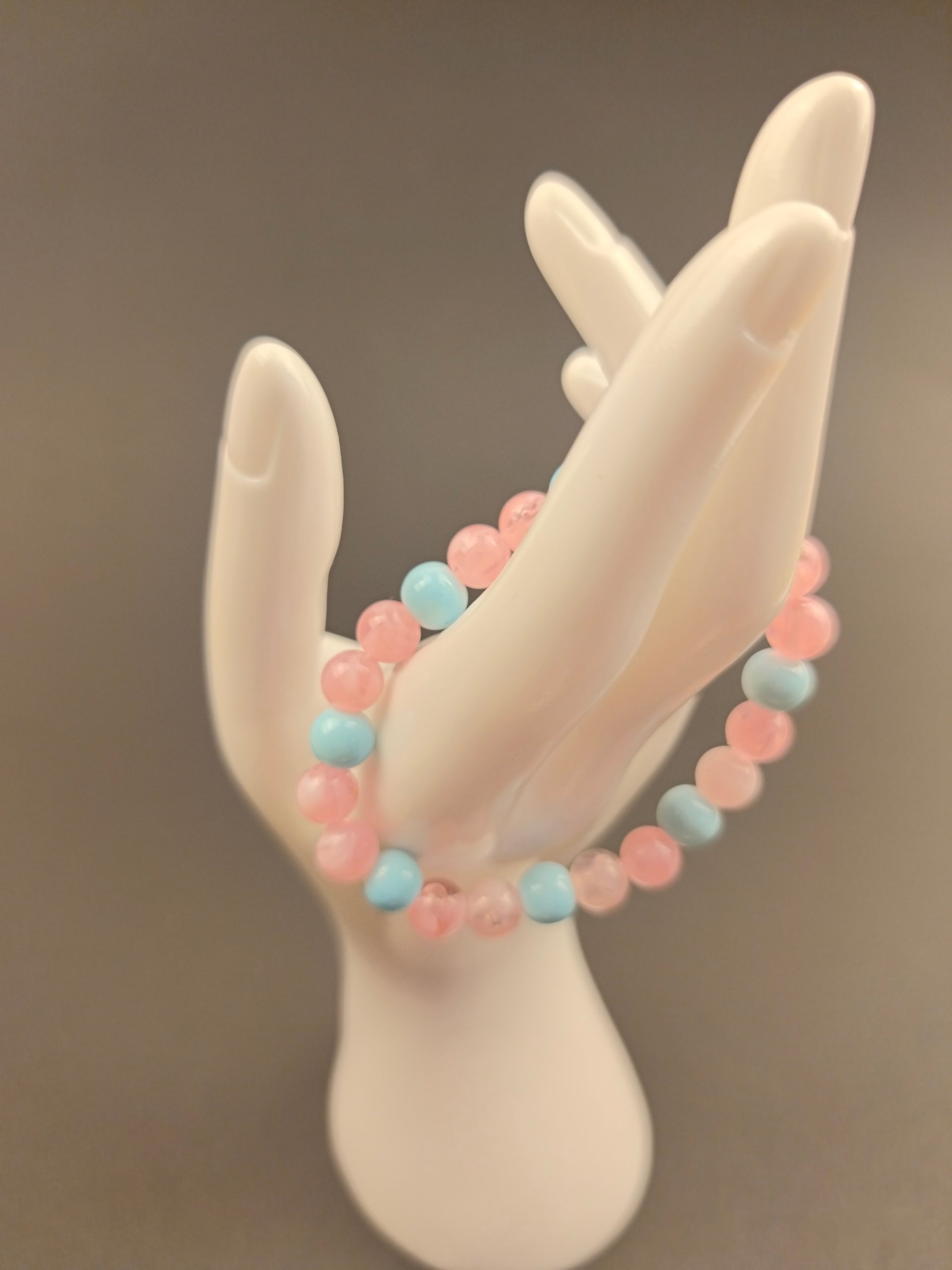 Ein zartes Armband, das die Leichtigkeit eins Sommerhimmels einfängt. Die Perlen in sanften Rosa und himmlischen Blau tanzen in harmonischer Abfolge. Die runden Form symbolisiert Unendlichkeit und Verbundenheit, während die sanfte Farbpalette Ruhe, Liebe und Hoffung ausstrahlt. "Himmelstanz" ist nicht nur ein Schmuckstück, sondern ein stiller Begleiter für Momente der Freude und des inneren Friedens
