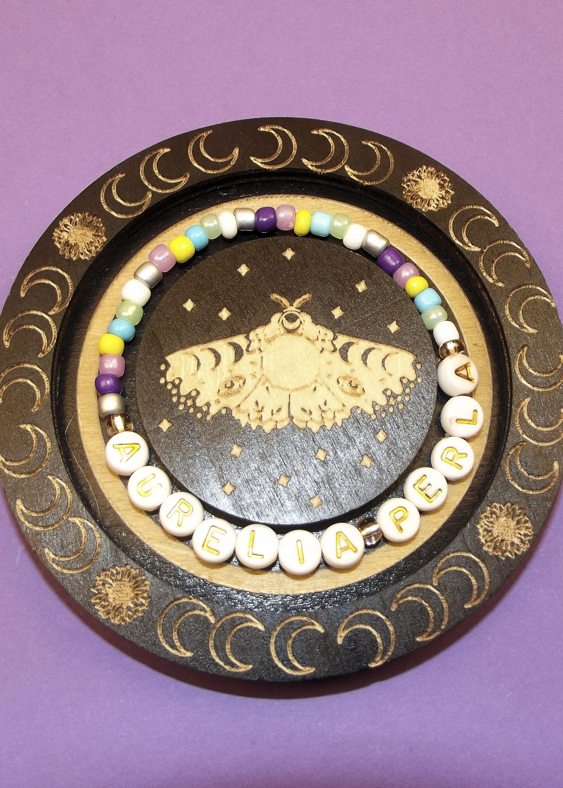 ✨ Du wählst den Text – und auch die Farben, die Größe der Perlen und die Länge des Armbands.